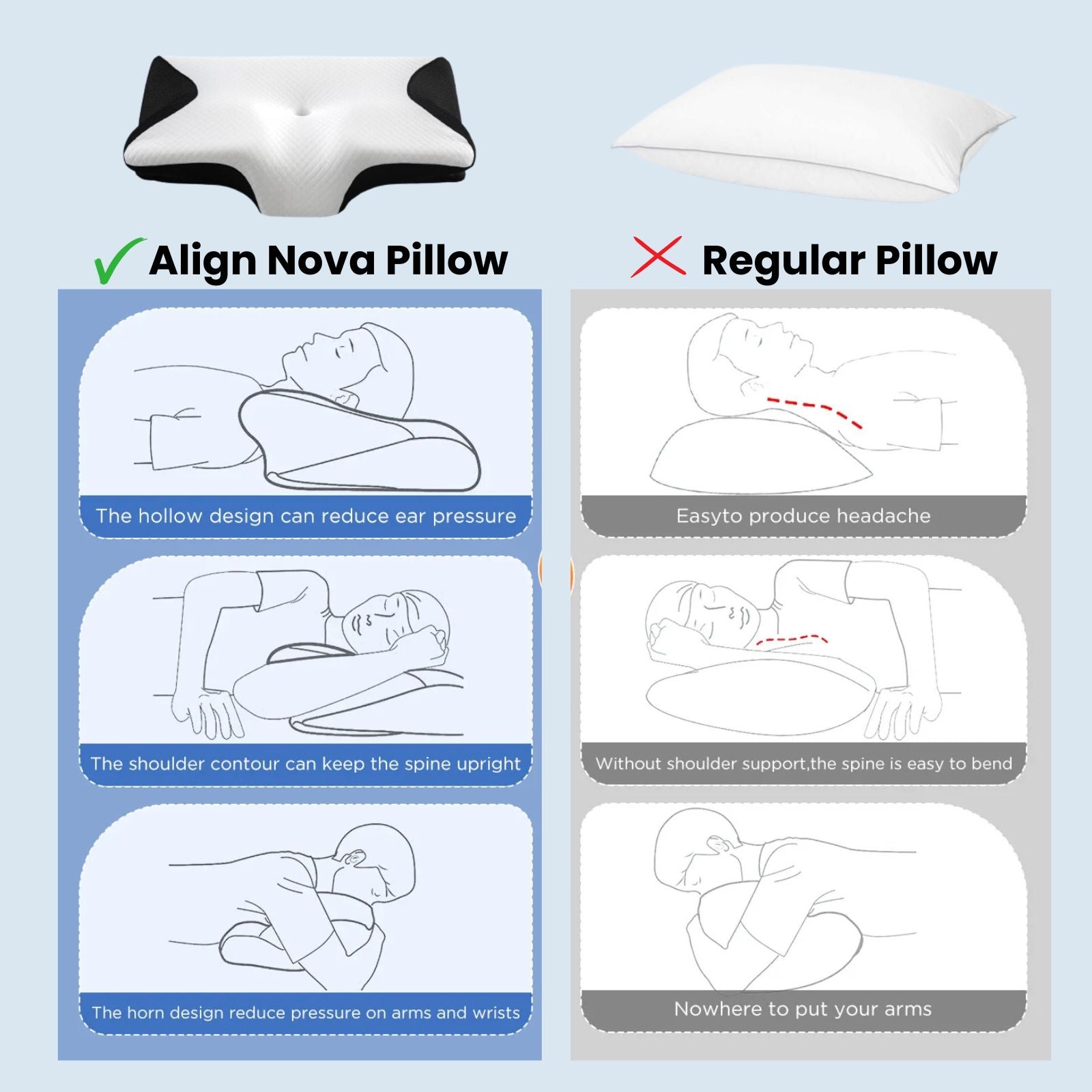 Every night you stay with the wrong pillow is another day you wake up drained, frustrated, and falling further from the life you deserve. Experience life changing comfort with Align Nova™, expertly crafted to relieve neck tension and perfectly align your spine,